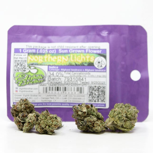 Eighth Brother Northern Lights is my go to flower for a good nights sleep. THC percentage in the upper 20’s, big beautiful buds, super affordable pri...