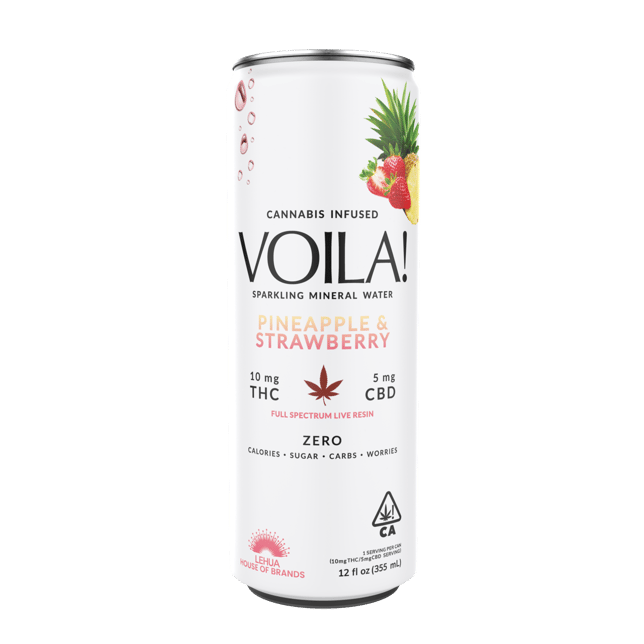 Juicy, subtly sweet, and tropical. Awaken your taste buds with this blend of citrusy pineapple and the brightness of ripe strawberries. This is a beverage defined by its function: refreshing, uplifting and mild. With low dose THC and CBD, and zero sugar, VOILA! offers a sense of ease to both the mind and body. Subtle herbal notes are carefully balanced with the sweet essences of fruit, infused with sun grown full spectrum live resin, and expertly carbonated for a crisp finish.
