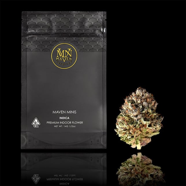Whether you are an experienced connoisseur or a novice, Maven Minis offer the perfect balance of quantity and quality, delivering the same high caliber experience as our full-sized flower, but in a convenient and travel-friendly package. These compact 14g Mylars may contain smaller nugs - but don't be fooled by their size! Each bag is packed with the same nuanced, top-tier Maven Genetics strains you know and love.