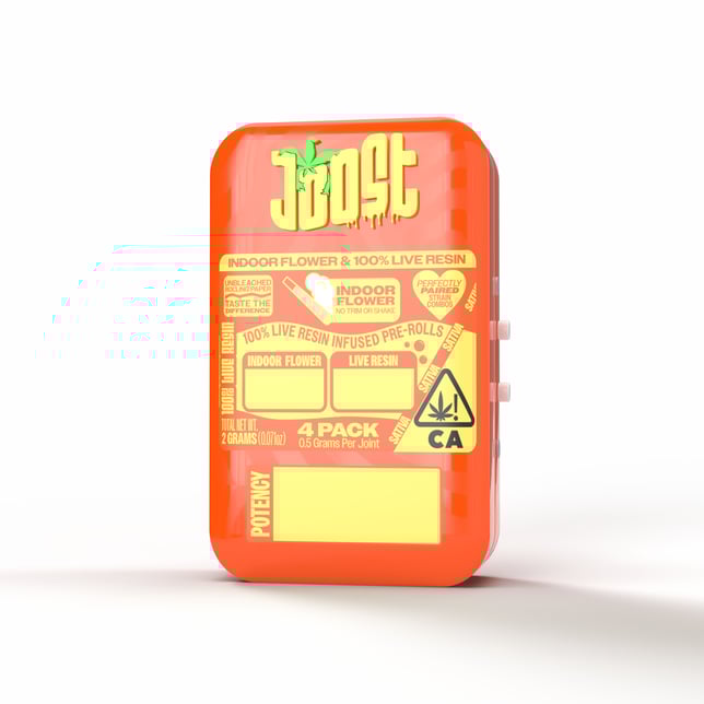 These lil' guys pack a punch! You get 4 joints of indoor flower infused with pure live resin, packed into a reusable tin that's perfect for on-the-go!