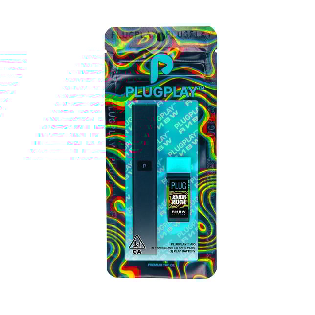 The KANDI KUSH AIO—a PLUGPLAY™ x RNBW exclusive—pairs the bold vibes of OG Kush x Trainwreck with our redesigned PLAY AIO Battery in sleek black. Compact, rechargeable, and made for movement, this limited drop is your go-to hybrid for nights under neon skies.