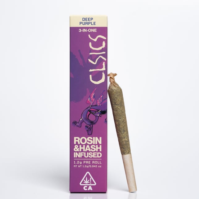 TRIFECTAS are an extra dank, triple threat of rosin, hash and flower; a phat 1.2g preroll perfect for sharing and getting super stoned. All CLSICS rosin infused pre rolls are handcrafted from start to finish. These products begin with carefully curated strain specific cannabis which is then infused with our in house processed fresh frozen ice water hash rosin extracted from meticulously procured strains selected for their unique terpene profiles to deliver a delicious, mouthwatering connoisseur level solventless experience.