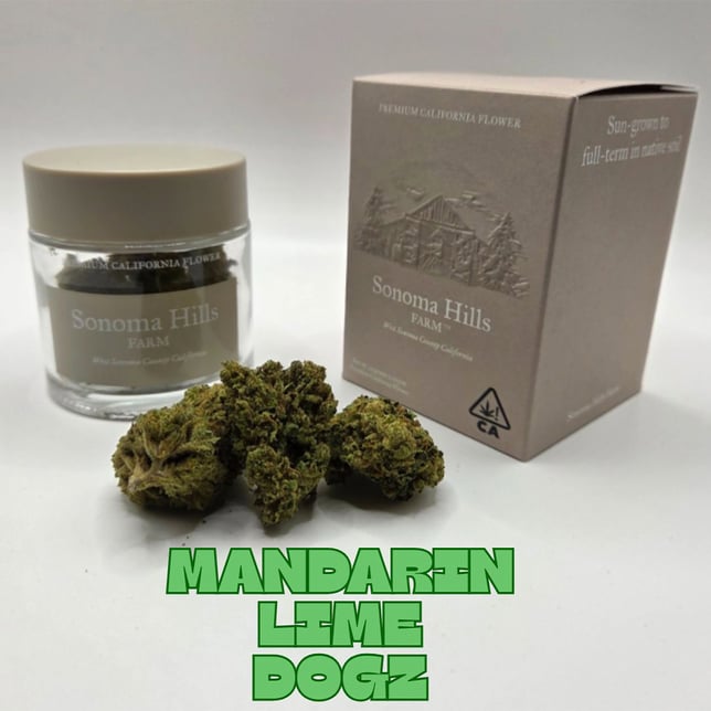 Premium OCal and Sun& Earth craft cannabis grown in the California sun. One of our favorite pairings in recent years is Mandarin with Cherry Lime Dog. Its aroma is not only striking but euphoric, inviting you to inhale deeply for a sensory experience that combines bright mandarin and lime peel with the sweet, fermented notes of cherry ambrosia. The effects are both stimulating and cerebral, offering a creatively balanced uplift. The cross with 2xog Zdog adds an enticing candy gas quality and enhances growth vigor. This strain is fast-growing, beautifully structured, and finishes relatively early, making it a true standout. Sonoma Hills Farm is proudly OCal certified "comparable-to-organic" and Sun&Earth certified.