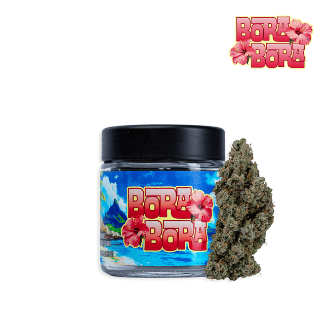 Take a trip with Bora Bora, a tropical powerhouse bursting with bold, exotic flavor. Notes of Starboom candy, creamy fruit, bubblegum, and hibiscus flowers collide in a smooth, vacation worthy smoke. Sweet and floral on the inhale, gassy, rich and fruity on the exhale. Bora Bora delivers a layered, mouth-coating experience that feels like paradise. With strong, long-lasting effects, this strain hits hard while keeping things breezy and fun.