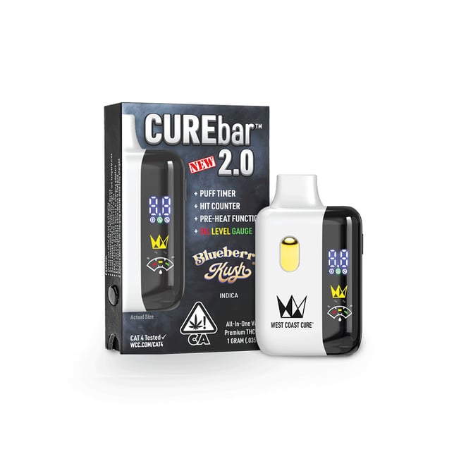 WCC’s 1-gram Blueberry Kush Ready-To-Use CUREbar 2.0 is ideal for those looking to enhance their sense of chill. A full gram of strain-specific extracts, the Indica-leaning oil in this rechargeable auto-draw vape produces a smooth and robust pull. Stress less and enjoy more! The oil in this CUREbar creates a happy headspace and a strong sense of well-being.