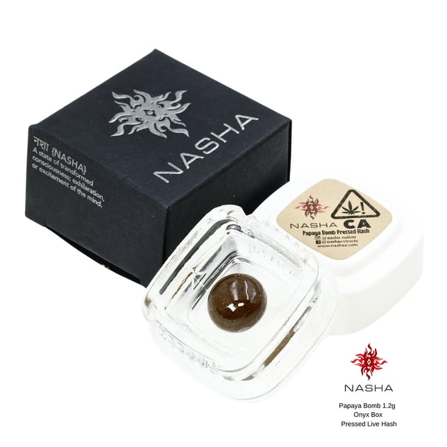 Nasha’s Onyx Label Hash is our highest grade of hash: a 1.2g hand-rolled sphere of pressed live hash made from fresh frozen cannabis flowers that were hand-picked and sun-grown to peak maturity. Inspired by the hand-rubbed Charas of India, we use our signature cold-water method to transform frozen live cannabis flowers into a live hash.