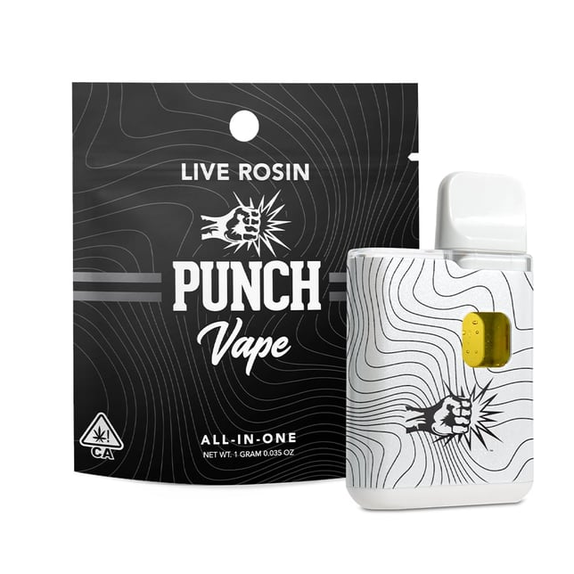 Punch’s Live Rosin AIO delivers a smooth 1-gram all-in-one experience with perfectly consistent live rosin and reliable rechargeable hardware. Pure flavor, no extras needed.