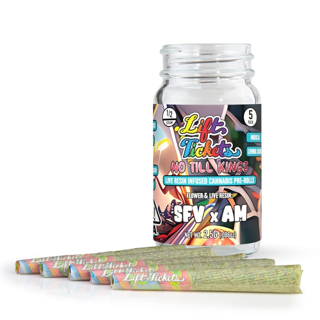 "SFV X AM BY NO TILL KINGS IS A HEAVY INDICA CROSS THAT BLENDS THE CLASSIC OG INTENSITY OF SFV OG WITH THE DESSERT-LEANING DEPTH OF ANIMAL MINTS, RESULTING IN A PROFILE THAT BALANCES EARTHY CITRUS AND PINE WITH HINTS OF VANILLA-MINT SWEETNESS. THE EXPERIENCE TYPICALLY STRIKES WITH A MOOD LIFT BEFORE SETTLING INTO FULL-BODY RELAXATION, MAKING IT A STRONG CHOICE FOR EVENINGS WHEN YOU WANT CALM, HAPPY UNWINDING WITHOUT SACRIFICING MENTAL EASE.