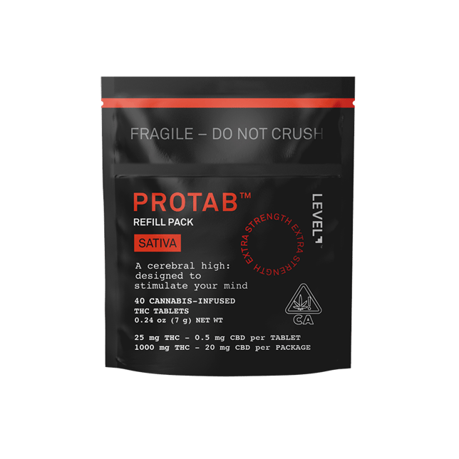 If you’re the type of person that just can’t get enough of a good thing, then the Sativa Protab Refill Pack is for you. Each Refill Pack contains 40 tablets, and each swallowable tablet contains 25 mg of THC and takes effect in 30–90 minutes, with a duration of 3–6 hours. Should you want to consume a lighter dose, they’re scored so you can easily split one in half.
