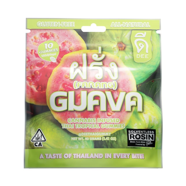A tropical tsunami of juice drips brightly from the core of Dee Thai's Guava. With floral undertones guiding the Guava, sour berry and pear flavor seeps from its pores.